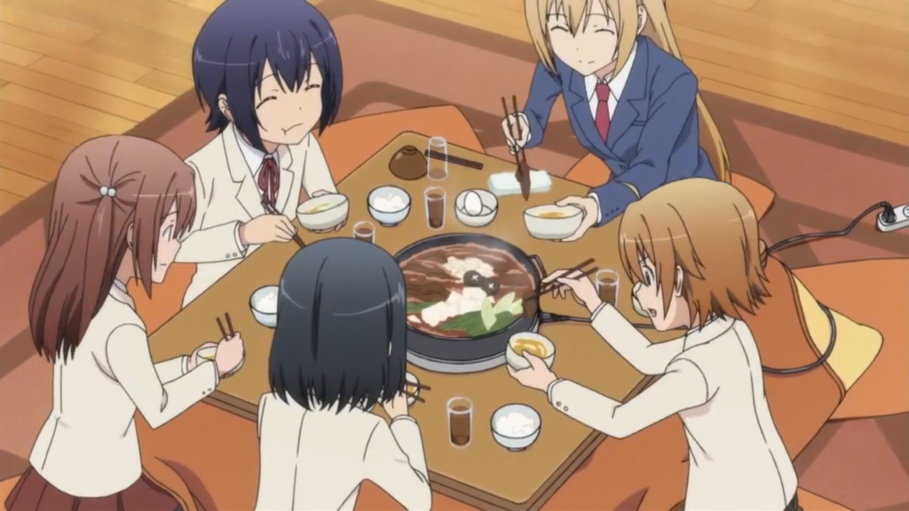 Sukiyaki (すき焼き) je popularno japansko zimsko jelo koje se kuha u loncu u kojemu su sastojci (naravno 😊 ) uredno poslagani, a najčešće se sastoji od tanko narezane govedine ili svinjetine, tofua, kupusa, shiitake ili enokitake gljiva, raznih vrsta rezanaca i drugog povrća. Često se jede na okupljanjima u hladne dane kojima se slavi kraj odnosno početak godine, i to kolektivno – štapićima iz istog lonca.