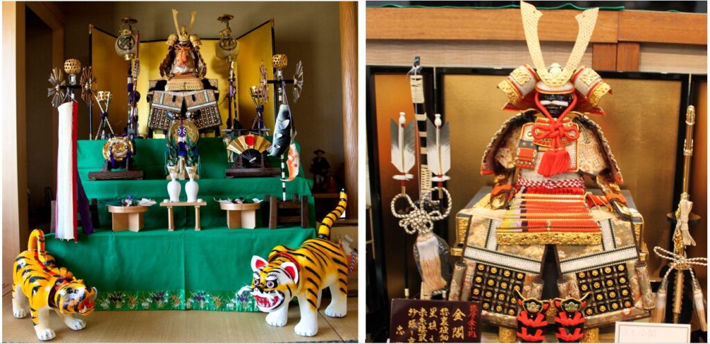 U istom duhu, domovi se dekoriraju samurajskim oklopima (yoroi, 鎧) i tradicionalnim kacigama (kabuto, 兜), u želji da slave nesalomljivi samurajski duh koji bi pomogao dječacima u izazovima koje život nosi. Oni koji se žele uključiti u slavlje a nemaju potrebne rekvizite, mogu napraviti jednokratni origami kabuto šešir od papira.