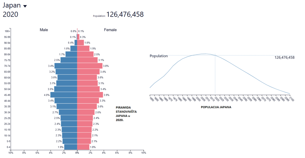 Japanci su jedna od najdugovječnijih nacija svijeta, sa prosječnim životnim vijekom žena od 87.32 te 81.25 godinu za muškarce. Za 94,5% djevojčica i 89,5% dječaka rođenih u Japanu u 2018. godini očekuje se da će slaviti svoj 65., a za 50,5% djevojčica i 26,5 % dječaka rođenih iste godine očekuje se da će slaviti svoj 90. rođendan. Razlozi za dug život su vjerojatno kombinacija medicinskih i socijalnih faktora, te zdravih prehrambenih i životnih navika, a Japan već traži dugoročna socio-ekonomska rješenja za svoju populaciju koja generalno i brzo stari.